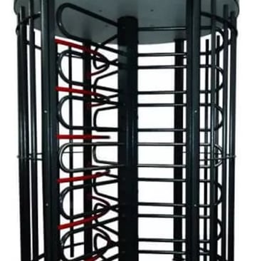 Uma catraca torniquete é um dispositivo de segurança que controla o acesso de pessoas a locais restritos, permitindo a passagem de apenas uma pessoa por vez.